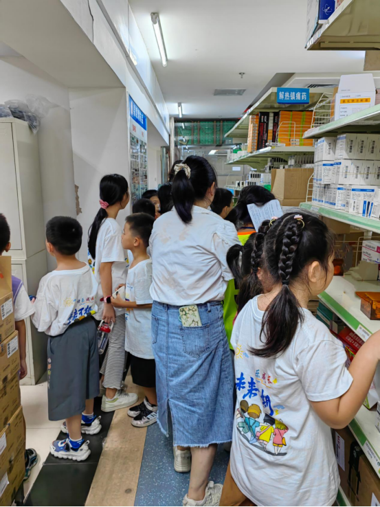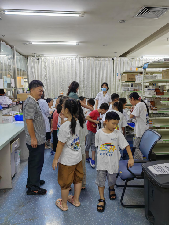 理论学习之后,孩子们在药学部吉训恋主任和党员们的带领下,分批参观了医院的中心药房,近距离接触药品管理的全过程: