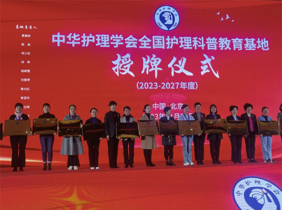 近日,中华护理学会全国护理科普教育基地授牌仪式暨2023年科学传播能力提升培训班在京举行,我院成功获批“中华护理学会全国护理科普教育基地”,科护士长常鹏环代表我院护理部参加授牌仪式。