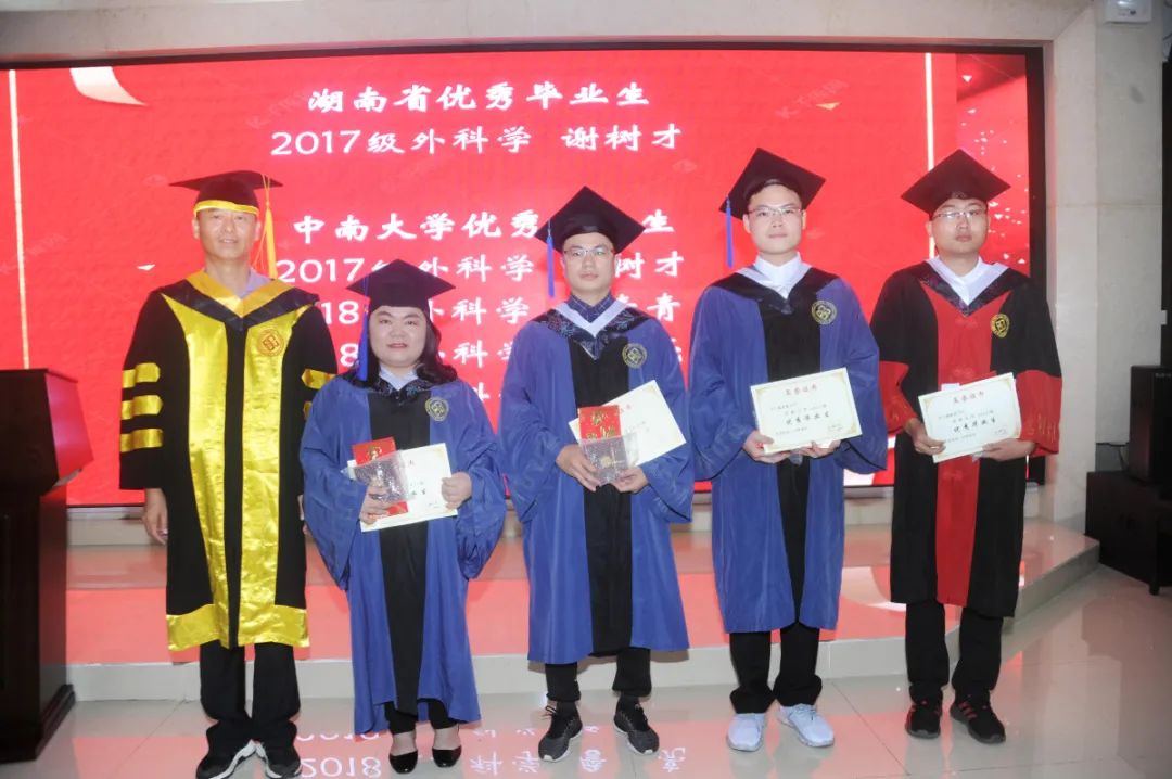 张超处长为“湖南省2021届优秀毕业生”谢树才、“中南大学2021届优秀毕业生”谢树才、雷青青、詹文亮、潘翔颁奖。