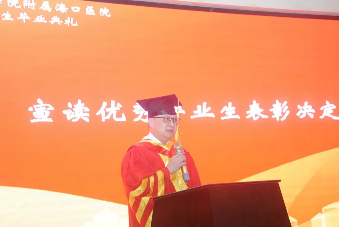 党委书记王会庆宣读中南大学湘雅医学院附属海口医院2021届毕业研究生名单。