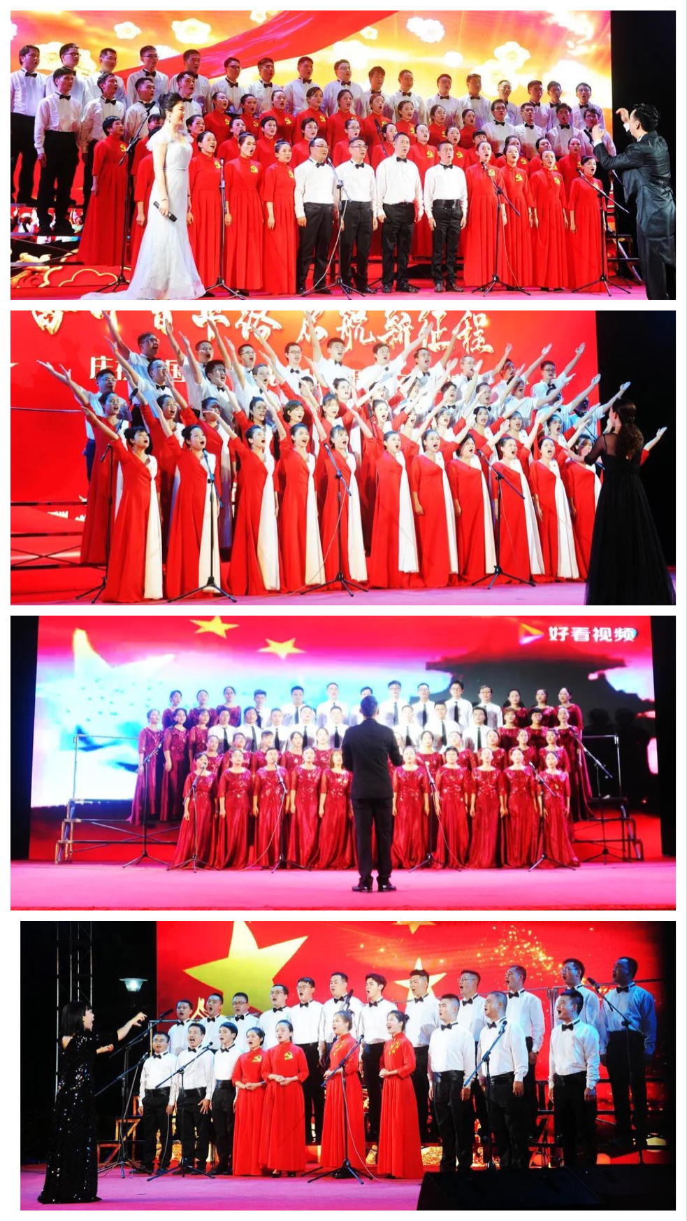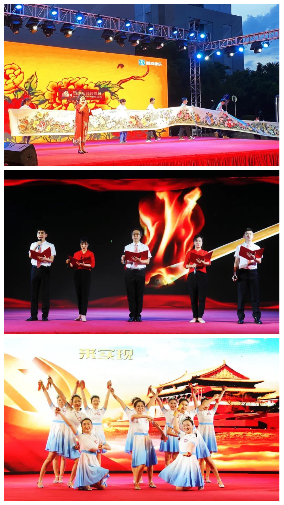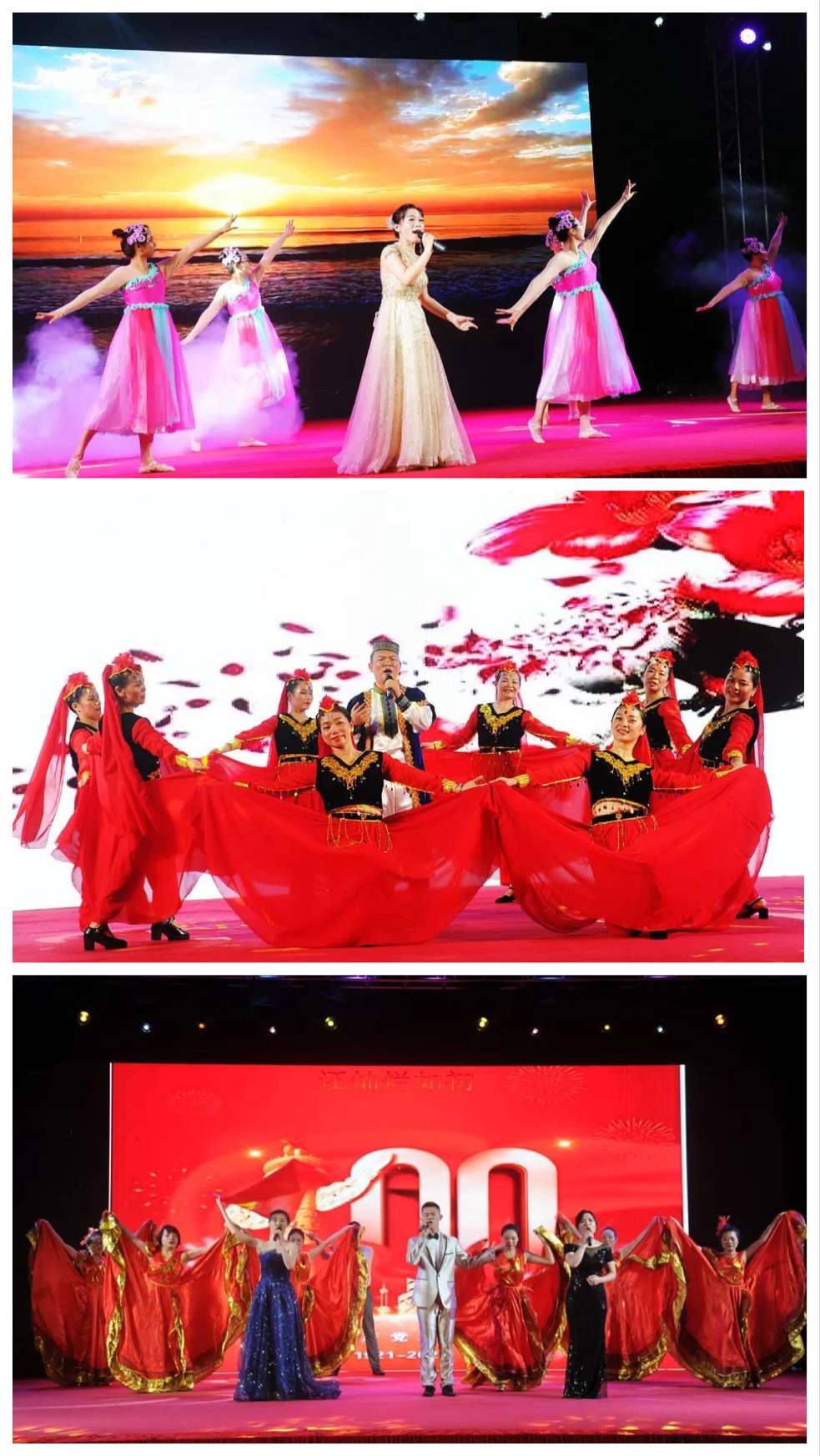 歌伴舞《鼓浪屿之波》、《花儿为什么这样红》、《百年》等回顾了100年来中国共产党艰苦卓绝的奋斗历程,深情地讴歌了党的丰功伟绩,让大家重温了党的光辉历程。