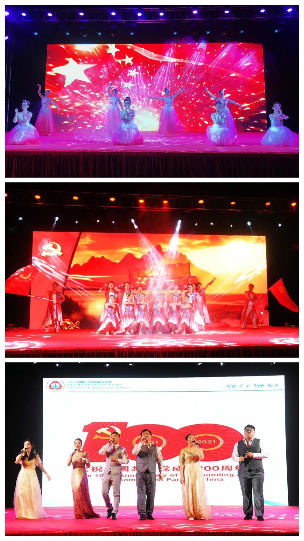 隆重举办“庆祝中国共产党成立100周年文艺汇演”。用一场激情澎湃的红色表演,通过不同形式的文艺节目,讴歌了党的光辉业绩,展现了我院在党的领导下勇担社会责任、积极回馈社会、实现跨越发展的拼搏精神与奋斗历程。