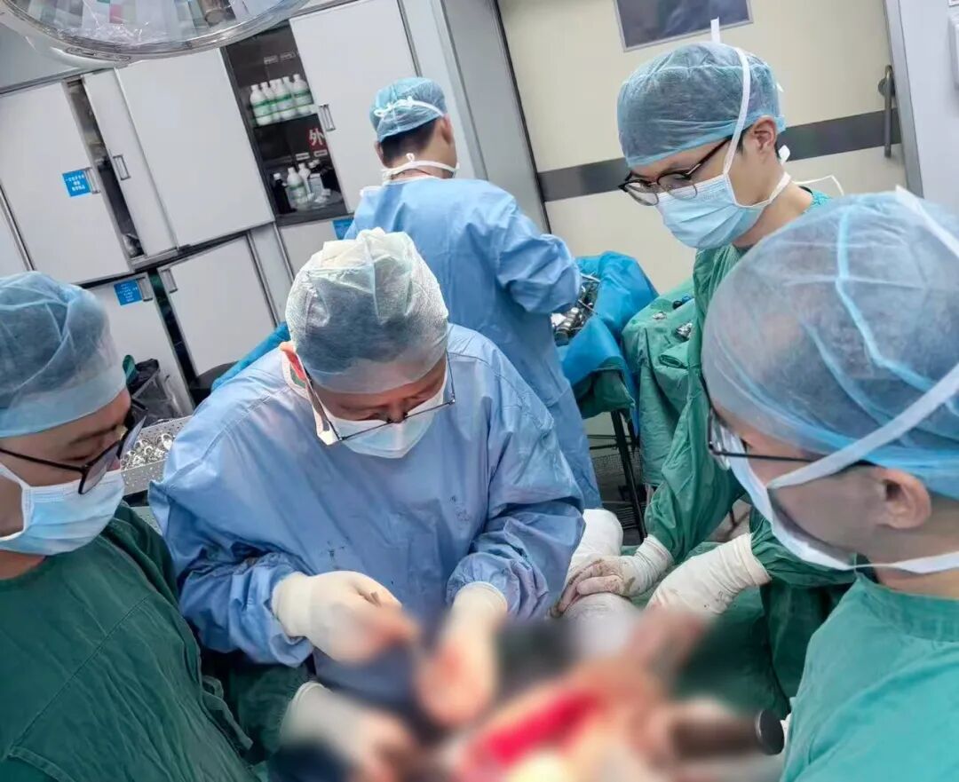 术中,汪群力凭借丰富的翻修经验和娴熟的操作技巧,带领团队精准取出松动假体,依托定制模具定位缺损区域,顺利植入个性化3D打印髋臼假体及金属垫块,成功重建髋关节结构稳定。整台手术操作精准、过程顺畅,充分体现了我院关节外科在复杂翻修手术中的技术引领力和综合保障力。