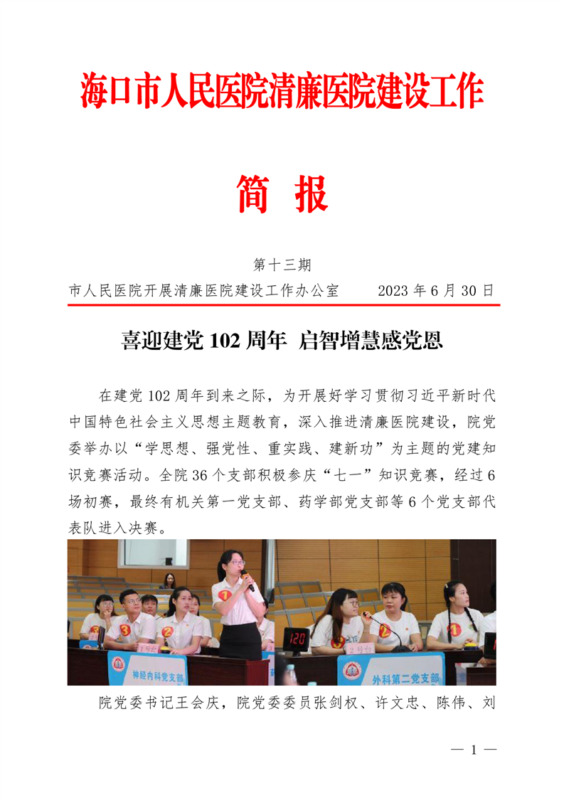 禁忌书屋 清廉医院建设工作简报(第十三期)